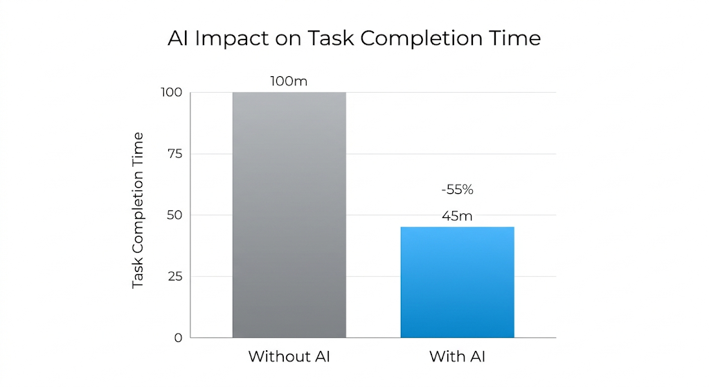 GitHub에서 발표한 공식 연구 결과에 따르면, 코파일럿을 사용한 개발자는 그렇지 않은 개발자보다 작업을 최대 55% 빠르게 완료했다고 해요.